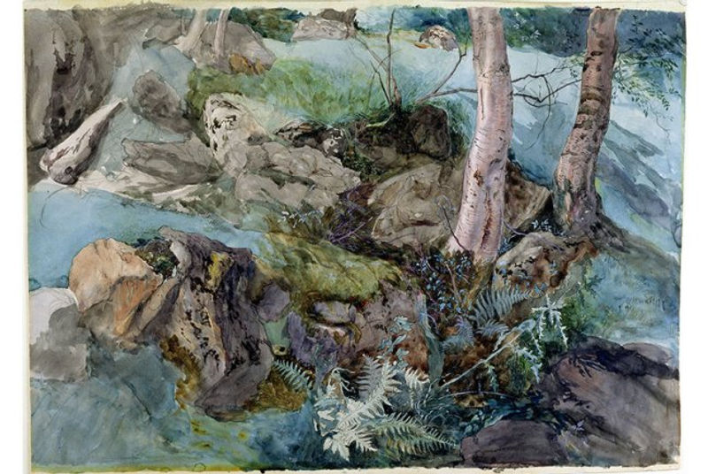 John Ruskin, Study of rocks and ferns in a wood at Crossmount, Perthshire, 1843