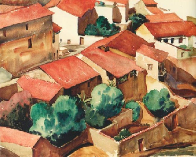 Lionel H. Pries, untitled view of Taxco roofs, mid-1930’s